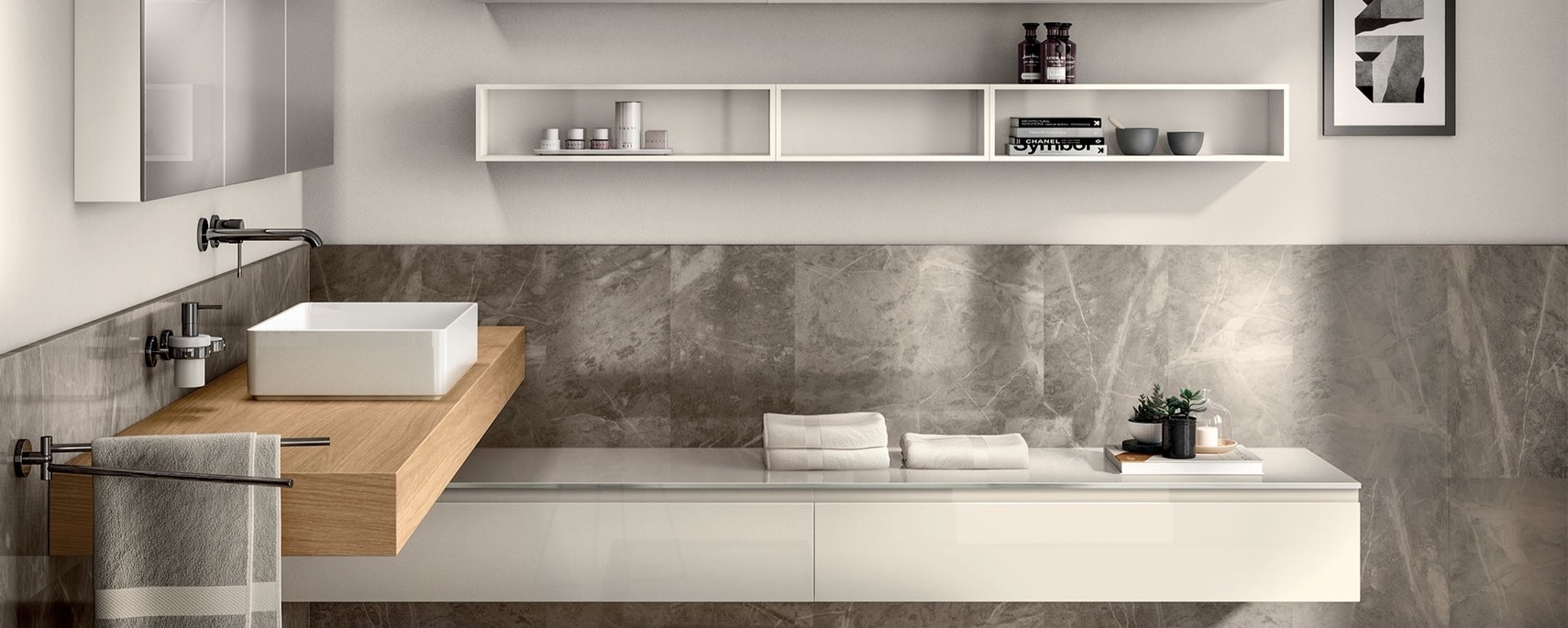 Quale larghezza è adatta al mio bagno? Per bagni piccoli consigliamo 60 o 80 cm; per comfort extra, 100 cm. Se desideri due postazioni, 120 cm con doppio lavabo è la misura ideale. Colonne e pensili aiutano a incrementare lo spazio contenitivo senza ingombrare.