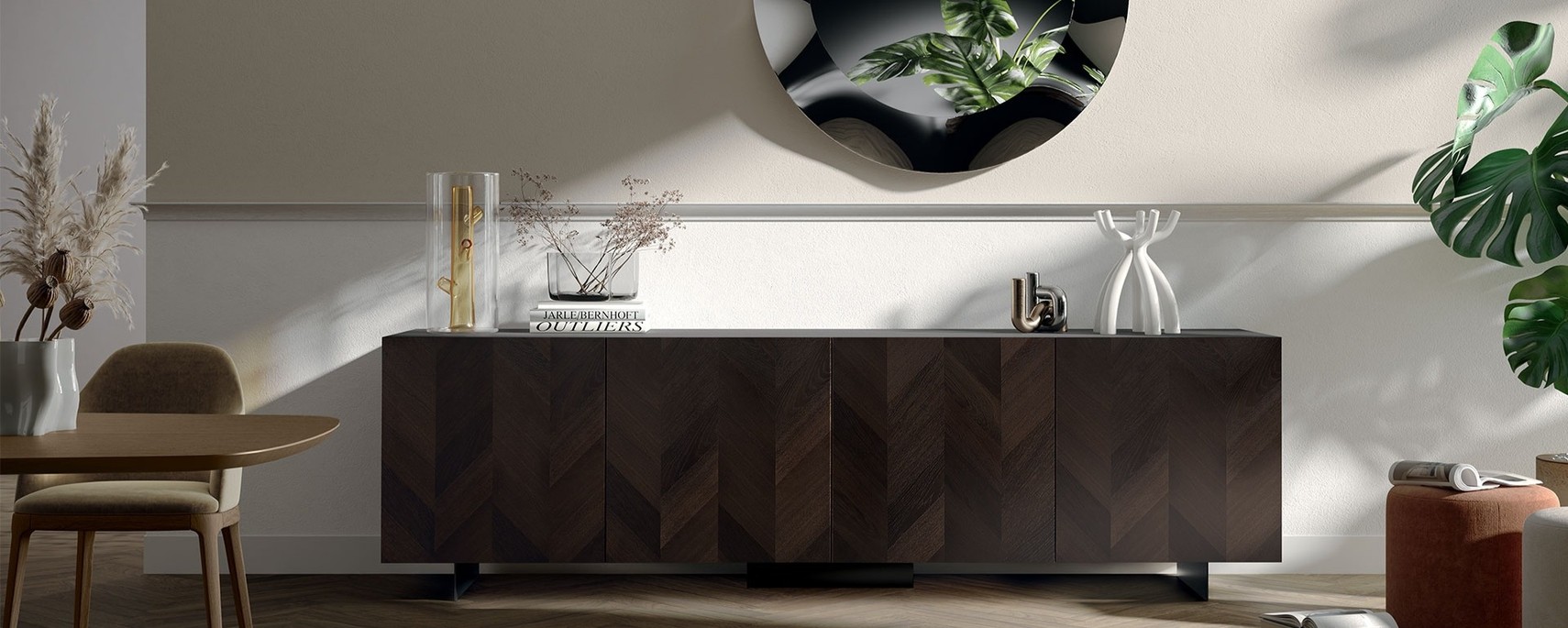 La madia della linea Sideboard Every Time interpreta la credenza in chiave attuale: volumi puliti, proporzioni equilibrate e un carattere trasversale che funziona nel soggiorno, accanto al tavolo da pranzo o in open space coordinato con la cucina.