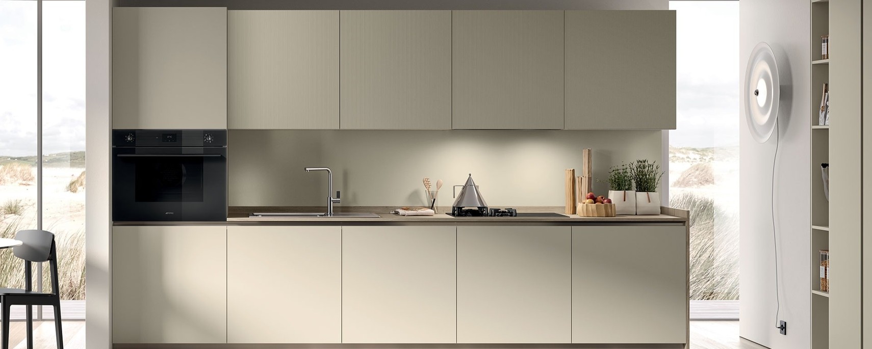Le cucine in pronta consegna includono composizioni complete, ideali se vuoi risparmiare tempo e budget. Un esempio di stile contemporaneo è il modello di cucina Lumina, caratterizzato da un equilibrio armonioso tra volumi, forme e materiali con pulizia formale e forte personalità estetica. Lumina si distingue per l’anta inclinata a 40°, che migliora l’ergonomia della presa, abbinabile a due tipologie di gola (Round o Flat) per un linguaggio visivo coerente e raffinato.